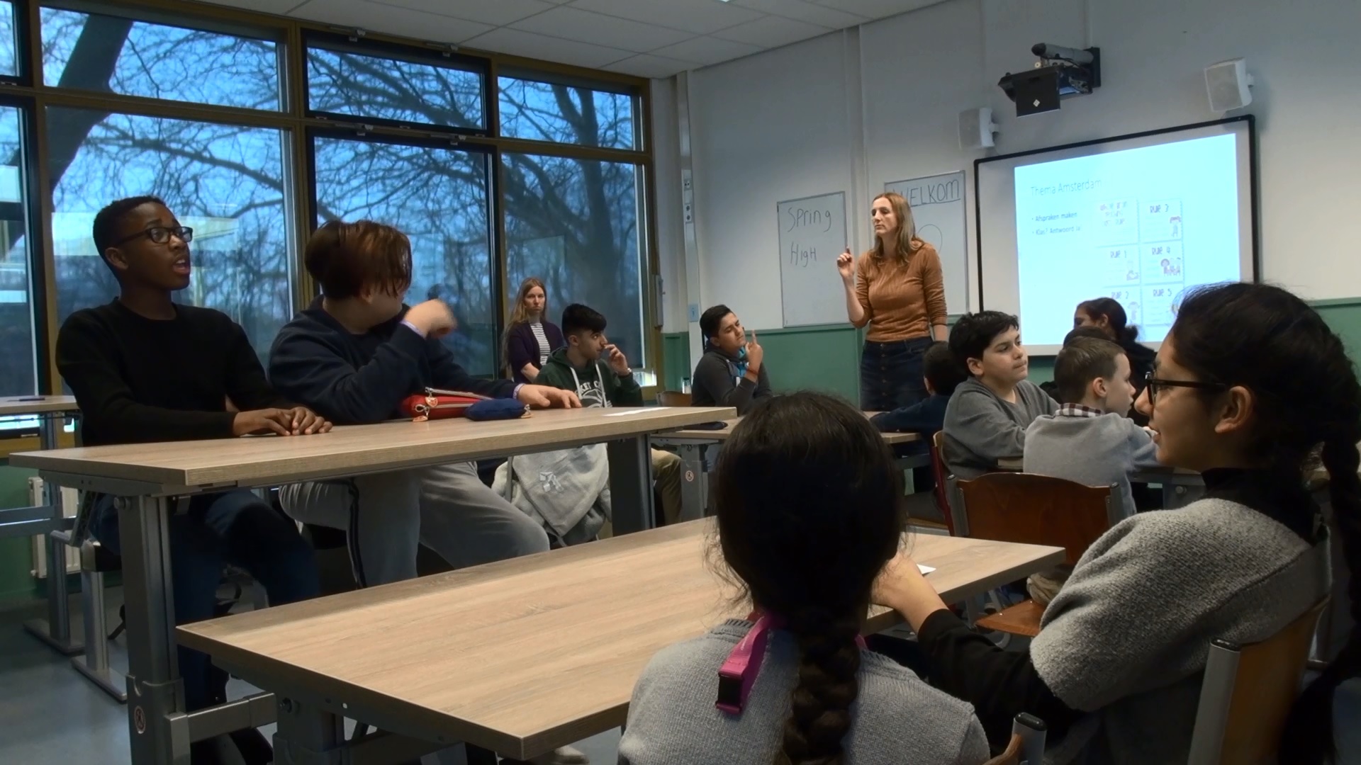 Twee jongens fietsen op de hometrainers die onder hun schooltafeltjes staan. De één een kop groter dan de ander. Hun lengte verraadt hun leeftijdsverschil. Op de Spring High school in Amsterdam Nieuw-West zitten kinderen van tien tot veertien jaar samen in de klas.