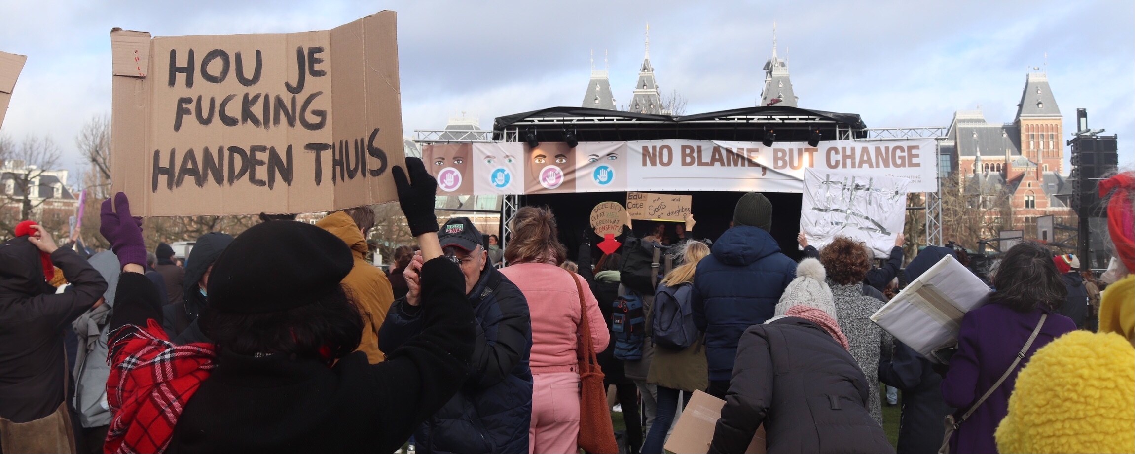 Op het Museumplein werd zaterdag 29 januari geprotesteerd tegen seksueel geweld. “No blame, but change” was de slogan van de manifestatie.