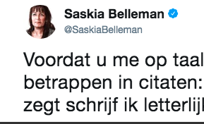 Saskia Belleman is rechtbankjournalist van de Telegraaf. In 2010 begon ze tijdens het proces tegen Geert Wilders met twitteren tijdens rechtszaken. Ze doet verslag van de inhoud. Legt uit hoe het in rechtbanken eraan toe gaat. En beantwoordt vragen van Twitteraars.