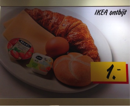 Het euro-ontbijt bij de Ikea in Delft is in het weekend voorlopig van de baan: te veel files. Bij het Amsterdamse filiaal zijn zulke maatregelen niet nodig. Wel lijkt het cappuccino-apparaat te bezwijken onder de grote drukte.