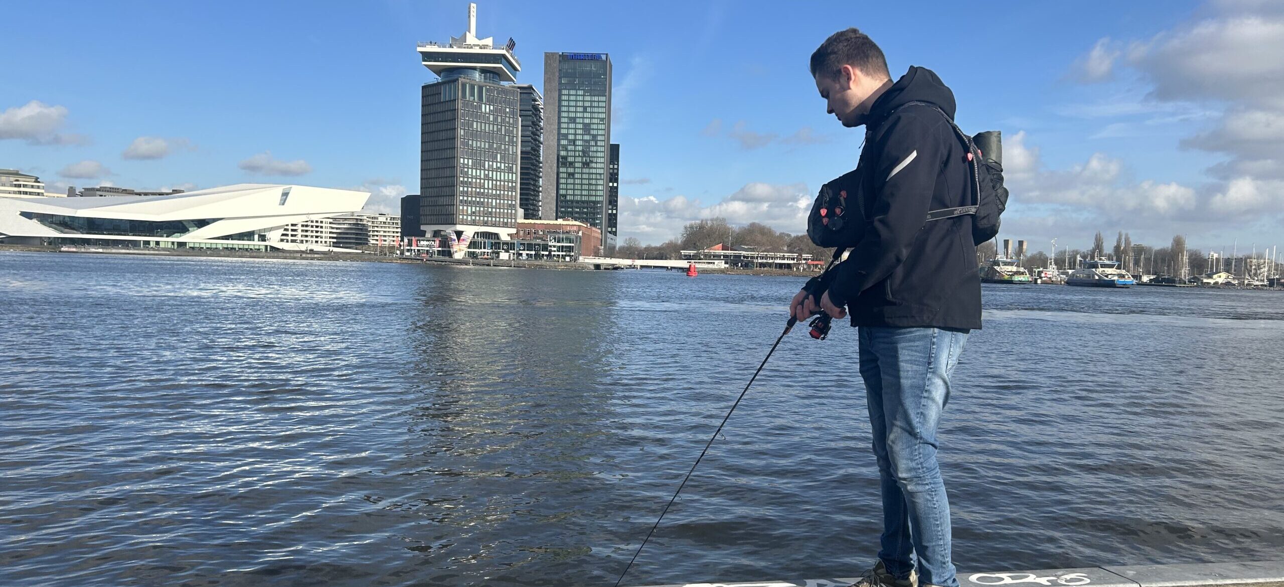 Op de steiger achter CS, waar de pontjes af en aan varen, loeren baarzen in het donkere water op hun prooi—of worden ze zelf aan de haak geslagen. Vissen is allang niet meer voorbehouden aan de pensionado langs een provinciaal kanaal. ‘De jeugd is de afgelopen jaren veel meer gaan vissen, vooral in de stad.’ Amsterdam is zelfs een waar snoekbaarzenwalhalla, volgens streetfisher Daan Rijpkema (22).