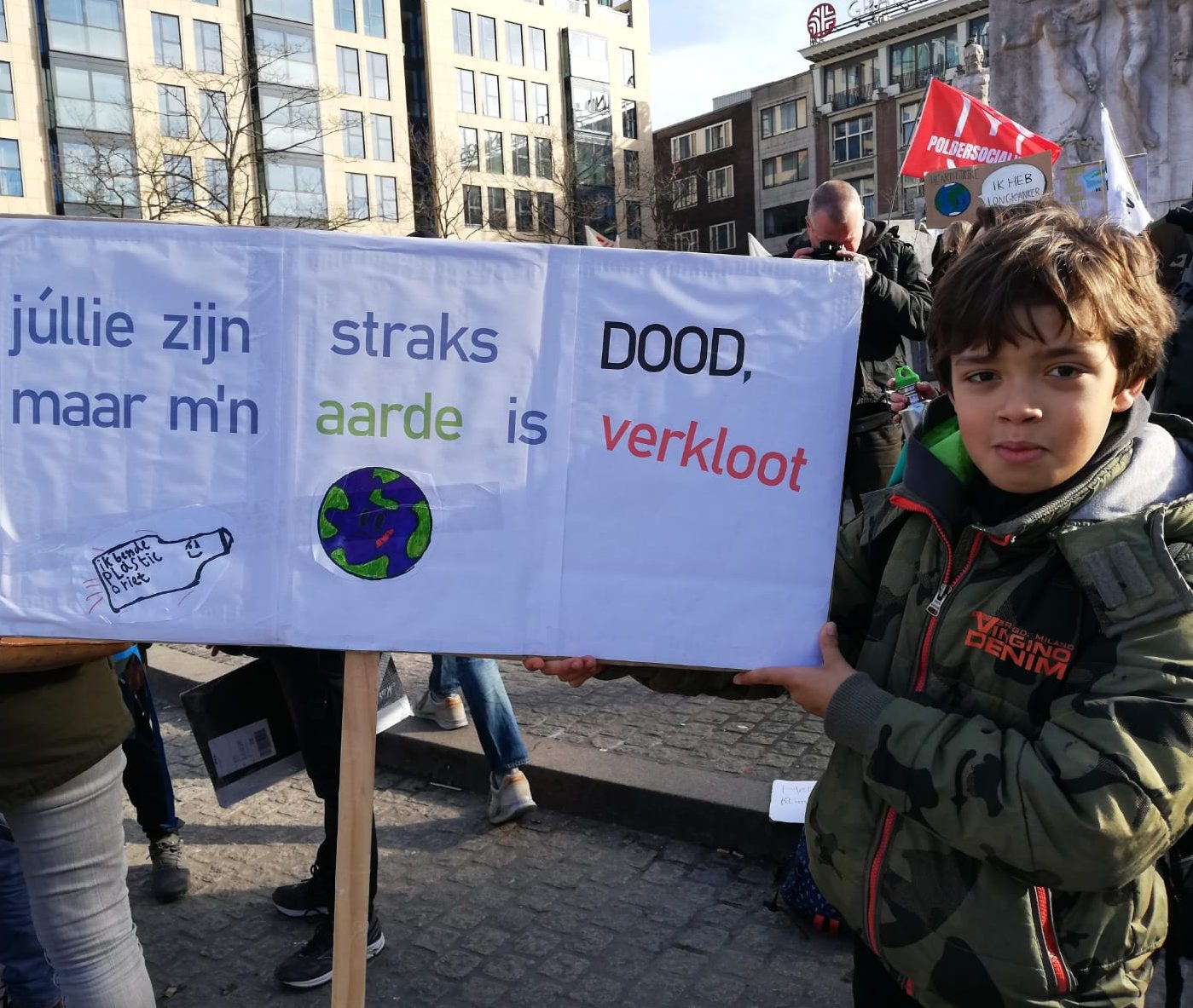 AMSTERDAM – Vandaag protesteerden scholieren, studenten én een handjevol ouders voor het klimaat. Ze liepen van de Dam in een schreeuwende stoet naar het Leidseplein. ‘Als er geen aarde meer is, heb je niks aan een diploma.’
